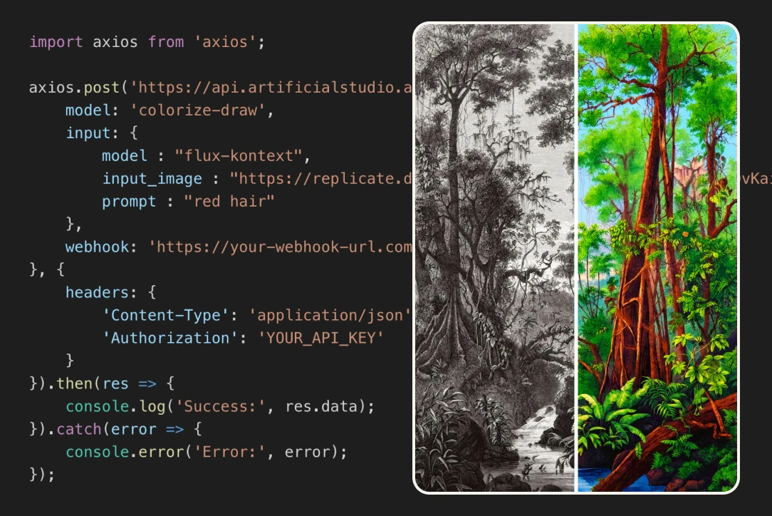 For studios, platforms, and product teams, this tool is also available through an API. You can integrate AI landscape colorization directly into your own service, app, or creative pipeline—alongside 50+ other AI tools offered by Artificial Studio.