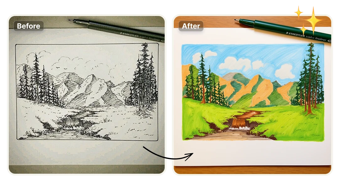 Bring landscapes, botanical sketches, and wildlife drawings to life with natural, realistic color. Our AI colorization tool understands vegetation, sky, water, terrain, and organic textures—applying lifelike palettes that preserve depth, atmosphere, and artistic intent.