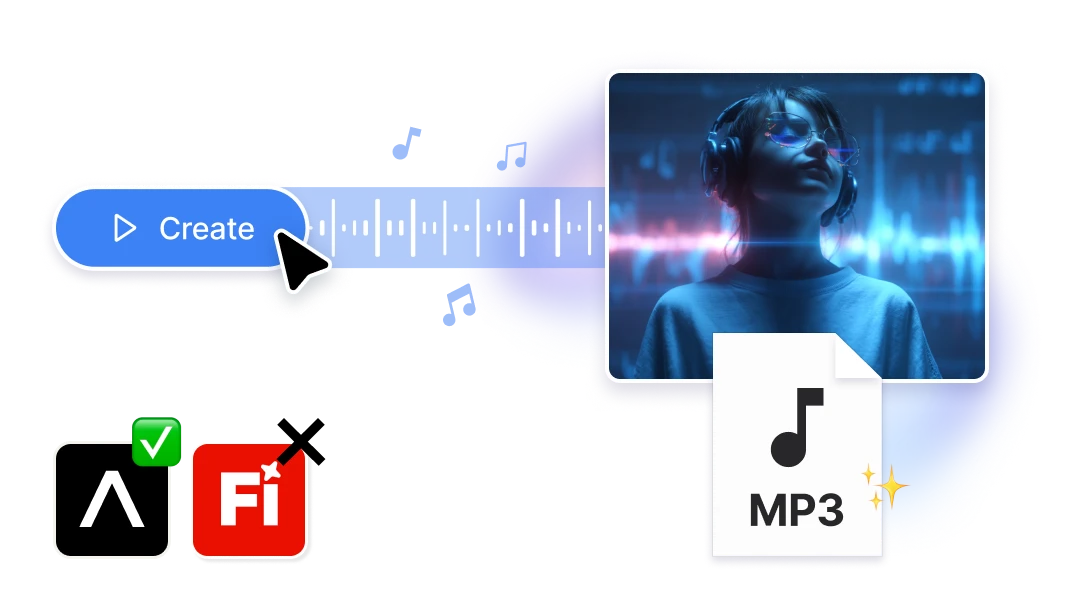 Adobe Firefly covers audio at a basic level, but not with the depth Artificial Studio offers. Artificial Studio brings the full audio stack under one roof: Create Music, Song Splitter, Drum Generator, Sound Effects, Text to Speech, Audio to Text, and Audio to Subtitles — so creators can build complete, production-ready content without ever leaving the platform.