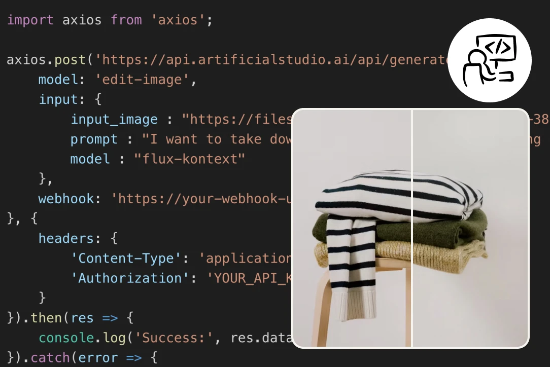 Need object removal integrated into your own tools, e-commerce platform, marketing workflow, or software product? ArtificialStudio offers a robust API so you can embed our object-remover engine directly into your system. Automate bulk image cleanup, deliver consistent quality across thousands of product photos, or build custom solutions for your clients. Unlock scalability, consistency, and efficiency—without reinventing the wheel.