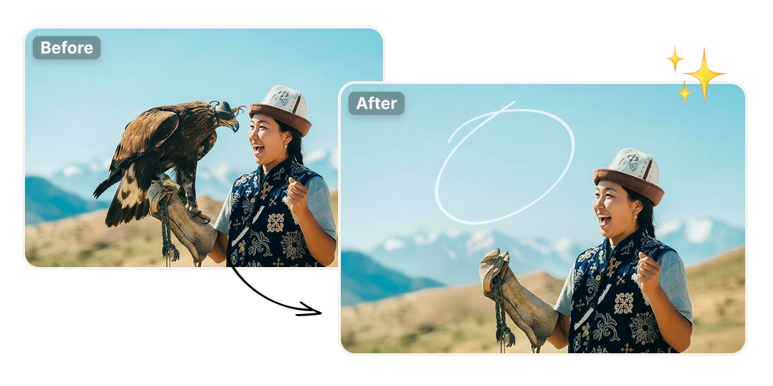 Say goodbye to complex software. You don’t need Photoshop skills or editing expertise to remove unwanted elements from your photo. Our web-based tool is user-friendly: upload, mark or describe what should disappear, and get your final image—no installations, no plugins, all done online. Ideal for social media creators, e-commerce sellers, travelers, or anyone who wants powerful object removal without steep learning curves.