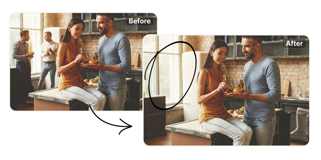 Forget about blurry patches or obvious edits. Our AI seamlessly fills in removed areas by matching texture, lighting, and color with the surrounding environment to deliver professional-grade, realistic edits. Whether it’s restoring scenery behind a removed object, keeping skin tones natural in portraits, or preserving fine details in real estate images, you’ll get image edits that look like nothing was ever removed.