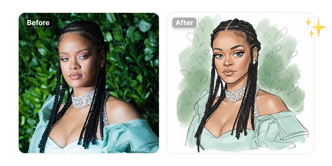 Forget long editing sessions: upload your photo, click Generate, and get a polished cartoon sketch or watercolor-style portrait in seconds. Unlike traditional design workflows or complicated “photo to cartoon” converters, our tool streamlines the process so you can focus on sharing or printing rather than editing.