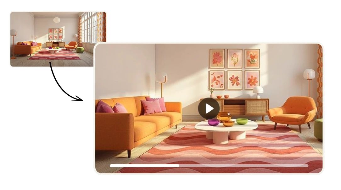 Turn static interior and exterior photos into animated visuals that capture attention across websites, social media, and digital ads. By animating property images, real estate teams can create more dynamic marketing assets that stand out in crowded listing platforms and increase time spent viewing properties.