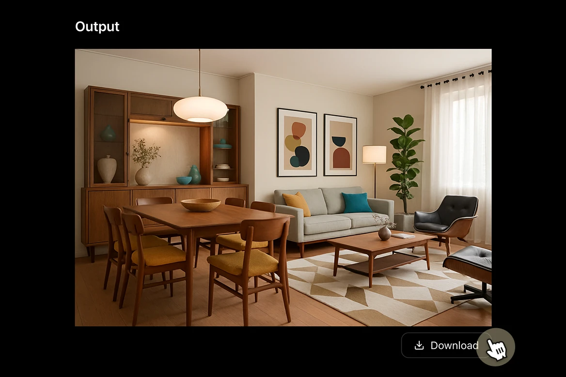 Within moments, your final output is ready to download and use across listings, websites, social media, presentations, or marketing campaigns. For teams with technical workflows, the same tools can also be accessed via API and integrated directly into internal systems or real estate platforms.