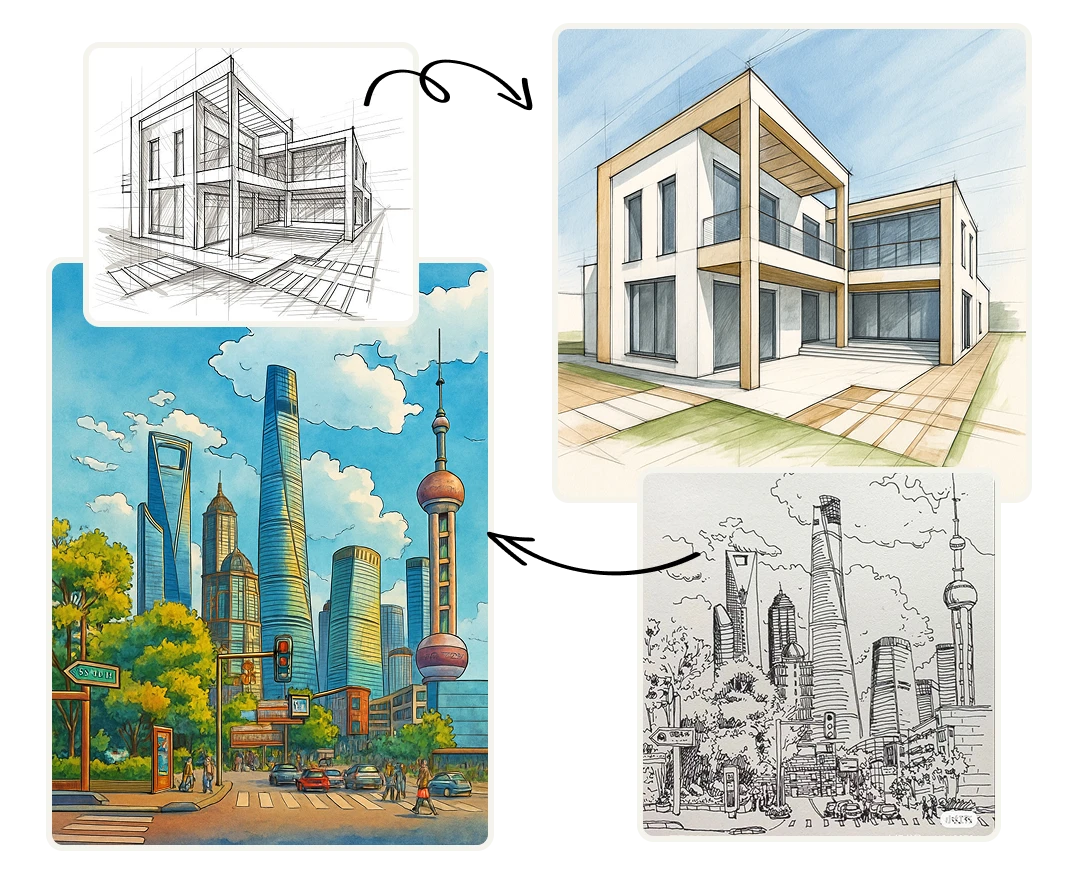 Bring hand-drawn architectural sketches to life by automatically adding color, depth, and visual clarity. This tool helps architects, developers, and real estate marketers turn early-stage concepts into polished visuals that are easier for clients and buyers to understand.