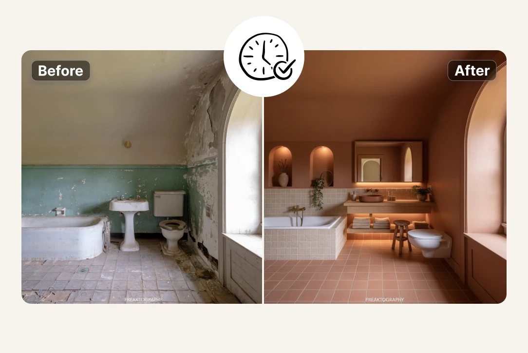 Add furniture, decor, and styling to empty rooms using AI-powered virtual staging. This allows real estate teams to showcase the true potential of a property without physical staging costs, helping buyers visualize how spaces can be lived in and significantly improving listing engagement and conversion rates.