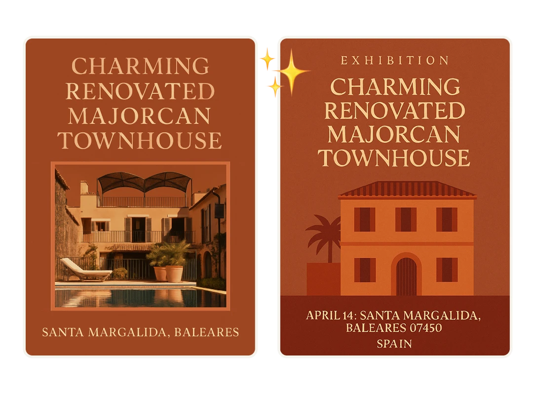 Explore Artificial Studio’s real estate-ready tools and select the one that fits your needs. From virtual staging and animated property images to 3D floor plans, architectural visualizations, and posters or flyers for listings and open houses, everything is designed to support property marketing from one platform.
